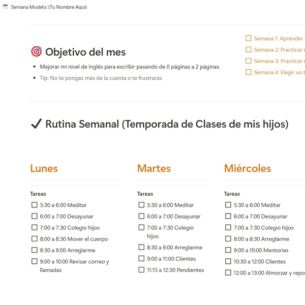 Plantilla de Notion para organizar tu semana.